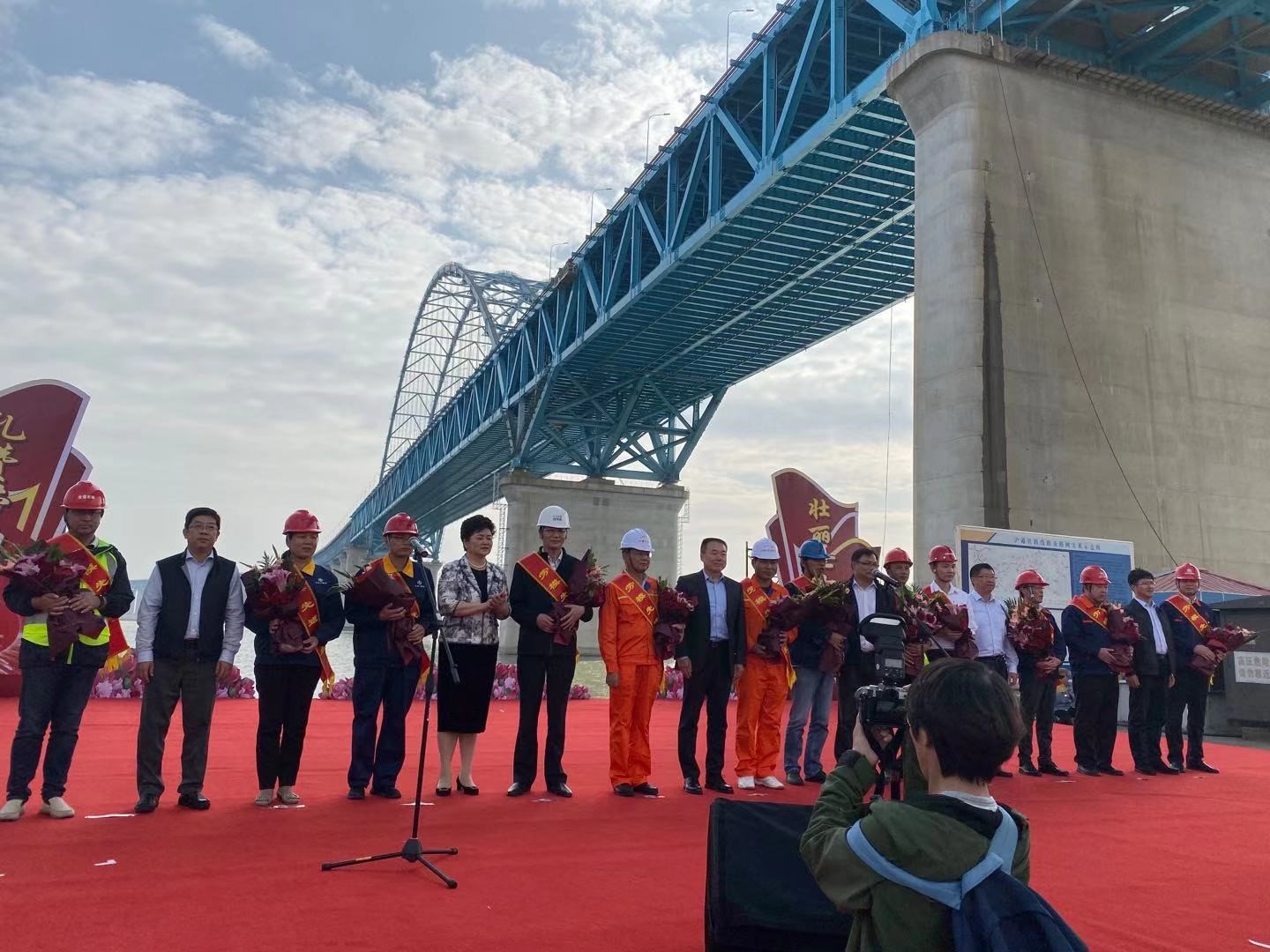 109日下午,全國總工會宣教部巡視員、全總文工團(tuán)黨委書記李慶忠?guī)ьI(lǐng)全總文工團(tuán)藝術(shù)家來到滬通長江大橋建設(shè)現(xiàn)場,為滬通大橋建設(shè)者們送上了“中國夢、勞動美、職工情”——慶祝中華人民共和國成立70周年慰問演出。集團(tuán)黨委副書記、副董事長、總經(jīng)理劉建帶隊(duì)參加了本次活動,海通公司副總經(jīng)理及參建單位兩位項(xiàng)目負(fù)責(zé)人作為勞模先進(jìn)代表接受現(xiàn)場表彰。