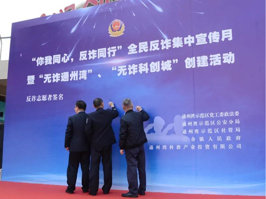 加大宣傳,營造氛圍。為加大反詐宣傳力度,產(chǎn)業(yè)公司在教學(xué)區(qū)、宿舍區(qū)多處懸掛反詐橫幅標(biāo)語、放置反詐展板;聯(lián)合遙望港派出所深入商貿(mào)、縱橫等院校開展反詐教育,建立科創(chuàng)城反詐聯(lián)盟,并組建了企業(yè)、商業(yè)等反詐群;配合示范區(qū)舉行通州灣“你我同心、反詐同行”集中宣傳月暨“無詐通州灣”、“無詐科創(chuàng)城”創(chuàng)建活動,劉書記帶領(lǐng)科創(chuàng)城300余名師生參加啟動儀式。