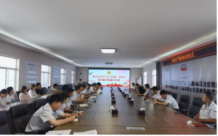 項目安全總監(jiān)作主題宣講,安全總監(jiān)高宏偉以“遵守安全生產法,當好第一責任人”為主題,帶領參會人員學習了:什么是安全生產月、安全生產十五條措施、新安全生產法十大亮點、企業(yè)安全生產八大主體責任、安全生產小知識。讓大家更清晰的了解安全生產月的發(fā)展歷史,以及國家對安全生產的重視,企業(yè)應履行的安全生產主體責任。